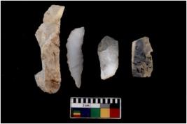 | Description / विवरण | There are n 4 flakes tool; there are large flakes with sides trimmed, Marks of secondary flaking are present on the both the faces. |