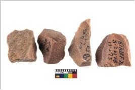 | Description / विवरण | Specimen of flake tool with prominent flaking marks. Some of them are tapering at one end. |