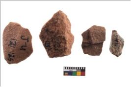 | Description / विवरण | There are n 4 utilized flake cores. There are multidirectional irregular scar pattern on both dorsal and ventral face of the flake cores. One has sharp edges and three have blunted edges. |