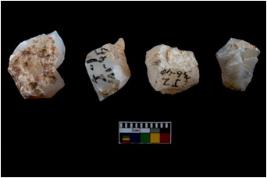 | Description / विवरण | Four utilised worked cores with sharp edges. Some of them are tapering at one end. Removal of flakes from few sides. |