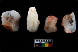 | Description / विवरण | Four utilised worked cores with sharp edges. Some of them are tapering at one end. Removal of flakes from few sides. |