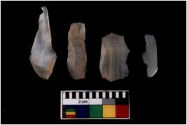 | Description / विवरण | There are n 4 flakes tool; there are large flakes with sides trimmed, Marks of secondary flaking are present on the both the faces. |
