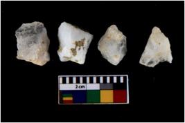 | Description / विवरण | There are n 4 utilized flake cores. One has flat base and three have blunted edges. |