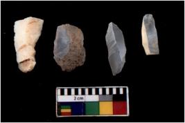 | Description / विवरण | There are n 4 Flake tool; There are multidirectional irregular scar pattern on them. few have blunt edges, Some of them are tapering at one end. |