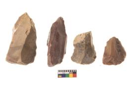 | Description / विवरण | There are n 4 cores; there are roughly rectangular scar pattern on them.Some of them are tapering at one end with sharpe edges. |