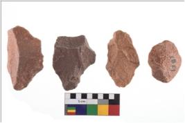 | Description / विवरण | There are n 4 utilized flake cores. There are multidirectional irregular scar pattern on both dorsal and ventral face of the flake cores. One has sharp edges and three have blunted edges. |