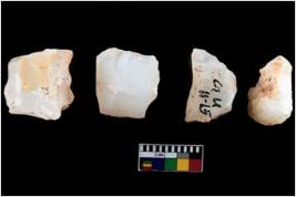 | Description / विवरण | Four utilised worked cores with sharp edges. Some of them are tapering at one end. Removal of flakes from few sides. |