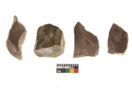 | Description / विवरण | There are n 4 cores; There are multidirectional irregular scar pattern on them. Some of them are tapering at one end. One of them flat thick bottom and pointed functional top. |