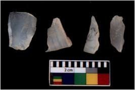 | Description / विवरण | There are n 4 flakes tool; there are large flakes with sides trimmed, Marks of secondary flaking are present on the both the faces. |