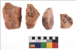 | Description / विवरण | Specimen of flake tools with prominent flaking marks. They are made up of a short flakes with sides trimmed. |