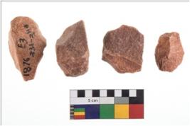 | Description / विवरण | There are n 4 utilized flake cores. There are multidirectional irregular scar pattern on both dorsal and ventral face of the flake cores. One has sharp edges and three have blunted edges. |