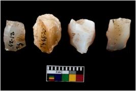 | Description / विवरण | Four utilised worked cores with sharp edges. Some of them are tapering at one end. Removal of flakes from few sides. |