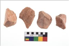 | Description / विवरण | Specimen of flake tools with prominent flaking marks. They are made up of a short flakes with sides trimmed. |