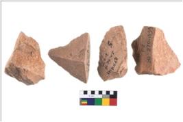 | Description / विवरण | There are n 4 cores. There are multi directional irregular scar pattern on both dorsal and ventral face of the cores. Some are tapering at one end. Some have flat base and few have blunted edges. |