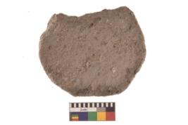 | Description / विवरण | Specimen of ground disc hopscotch made from a red ware. It has jagged edges with sign of chipping. It is rounded in shape. |