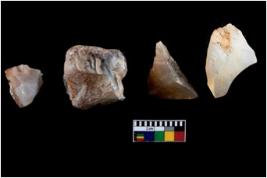| Description / विवरण | Four utilised worked cores with sharp edges. Some of them are tapering at one end. Removal of flakes from few sides. |