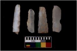 | Description / विवरण | There are n 4 flakes tool; there are large flakes with sides trimmed, Marks of secondary flaking are present on the both the faces. |