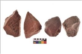 | Description / विवरण | Specimen of flake tools with prominent flaking marks. They are made up of a short flakes with sides trimmed. |