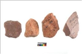 | Description / विवरण | There are n 4 cores. There are multi directional irregular scar pattern on both dorsal and ventral face of the cores. Some have blunted edges and some have round edges. |