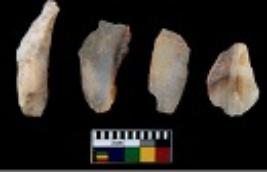 | Description / विवरण | There are n 4 utilized flake cores. There are multi directional irregular scar pattern on them. All of them are tapering at one end. |