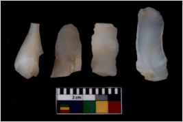 | Description / विवरण | There are n 4 Flake tool; There are multidirectional irregular scar pattern on them. few have blunt edges, Some of them are tapering at one end. |