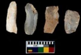 | Description / विवरण | There are n 4 utilized flake cores. There are multi directional irregular scar pattern on them. All of them are tapering at one end. |