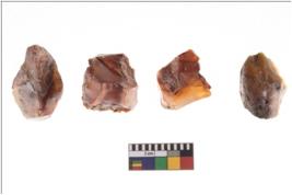 | Description / विवरण | Specimen of flake tools with prominent flaking marks. They are made up of a short flakes with sides trimmed. |