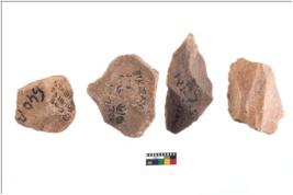 | Description / विवरण | There are n 4 cores. There are multi directional irregular scar pattern on both dorsal and ventral face of the cores. Some have blunted edges and some have round edges. |