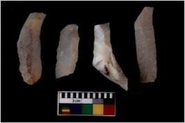 | Description / विवरण | There are n 4 flakes tool; there are large flakes with sides trimmed, Marks of secondary flaking are present on the both the faces. |