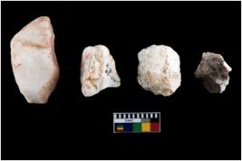 | Description / विवरण | Four utilised worked cores with sharp edges. Some of them are tapering at one end. Removal of flakes from few sides. |
