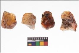| Description / विवरण | There are n 4 utilized flake cores. There are multidirectional irregular scar pattern on both dorsal and ventral face of the flake cores. One has sharp edges and three have blunted edges. |