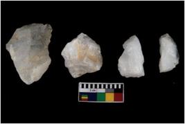 | Description / विवरण | There are n -4 of utilized worked cores. There are multidirectional irregular scar pattern and have sharp edges. One has a broken tip. |