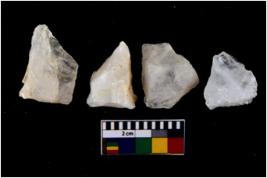| Description / विवरण | There are n 4 utilized flake cores. One is tapering at one end and three have blunted edges. |