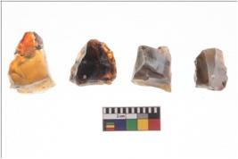| Description / विवरण | There are n 4 utilized flake cores. There are multidirectional irregular scar pattern on both dorsal and ventral face of the flake cores. One has sharp edges and three have blunted edges. |