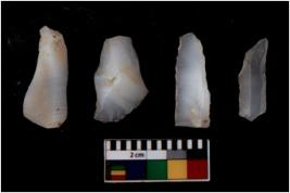 | Description / विवरण | There are n 4 Flake tool; There are multidirectional irregular scar pattern on them. few have blunt edges, Some of them are tapering at one end. |