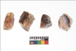 | Description / विवरण | Specimen of flake tools with prominent flaking marks. They are made up of a short flakes with sides trimmed. |