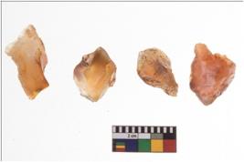 | Description / विवरण | There are n 4 utilized flake cores. There are multidirectional irregular scar pattern on both dorsal and ventral face of the flake cores. One has sharp edges and three have blunted edges. |