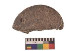 | Description / विवरण | A partially broken specimen of red ware disc with rounded and smooth edge and flat surface. It is having smooth surface areas other side is rough. |