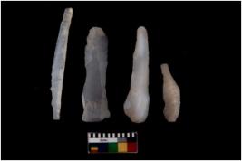 | Description / विवरण | There are n 4 Flake tool; There are multidirectional irregular scar pattern on them. few have blunt edges, Some of them are tapering at one end. |