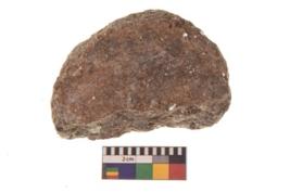 | Description / विवरण | Specimen of ground disc hopscotch made from a red ware. It has jagged edges with sign of chipping. It is rounded in shape. |