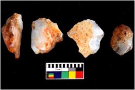 | Description / विवरण | There are n 4 utilized flake cores. There are multidirectional irregular scar pattern on both dorsal and ventral face of the flake cores. One has sharp edges and three have blunted edges. |