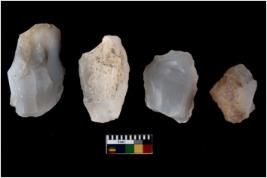 | Description / विवरण | There are n 4 cores; There are multidirectional irregular scar pattern on them with several broad fluted marks.The flake scars are seen on all sides |