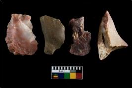 | Description / विवरण | Four worked utilised cores. Flakes removed from few sides. Most of them are uneven and few are tapering at one end. |