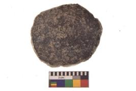 | Description / विवरण | Specimen of ground disc hopscotch made from a red ware. It has jagged edges with sign of chipping. It is rounded in shape. |
