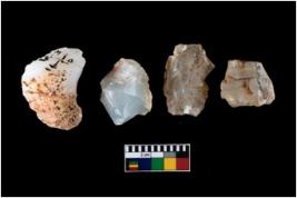 | Description / विवरण | Four worked utilised cores. Flakes removed from few sides. Most of them are uneven and few are tapering at one end. |