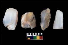 | Description / विवरण | Specimen of a cores with several broad fluted marks. The reverse bulb and platform can be seen. The flake scars are seen on all sides |
