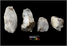 | Description / विवरण | There are n 4 cores; there are multidirectional irregular scar pattern on them. Some of them are tapering at one end, the dorsal is relatively flat. |