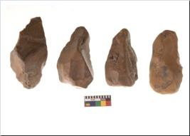 | Description / विवरण | There are n 4 flakes tool; there are triangular flake tool having flat thick body and deep long flake scar is seen on the upper side. It has flat thick bottom and pointed functional top. |
