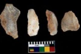 | Description / विवरण | There are n 4 utilized flake cores. There are multi directional irregular scar pattern on them. Three are tapering at one end and one has sharp edge. |