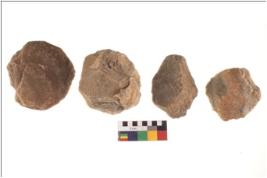 | Description / विवरण | Specimen of a cores with several broad fluted marks. Some of them are tapering at one end. |